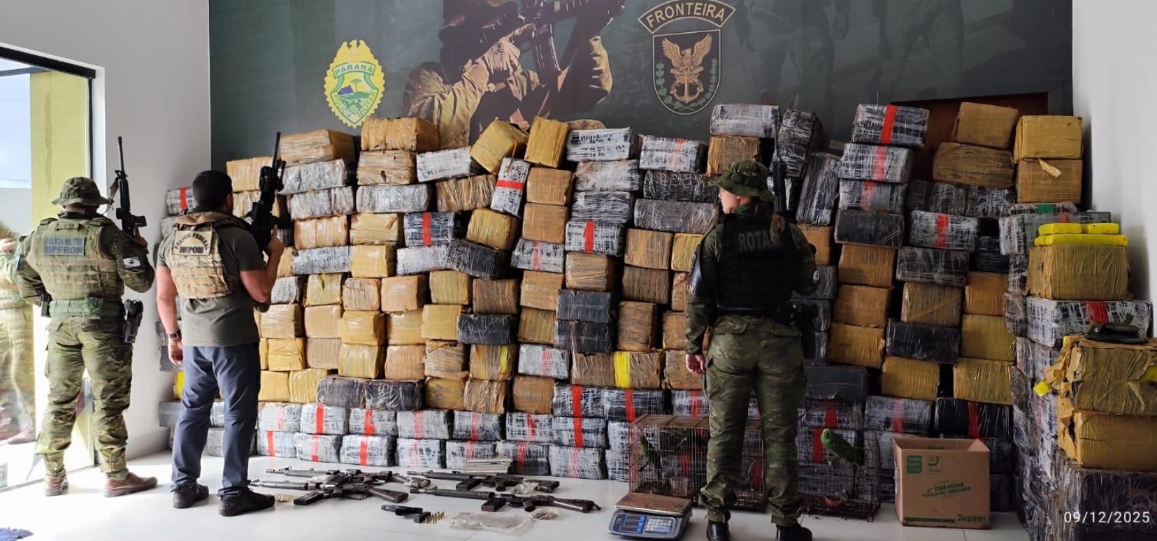 A Polícia Militar do Paraná, por meio do Batalhão de Polícia de Fronteira (BPFRON), em ação conjunta com o Batalhão de Polícia Ambiental (BPMA) e o NEPOM da Polícia Federal, realizou uma das maiores apreensões do ano nesta terça-feira, 9 de dezembro, em uma área rural de Icaraíma, nas proximidades do Rio Paraná.