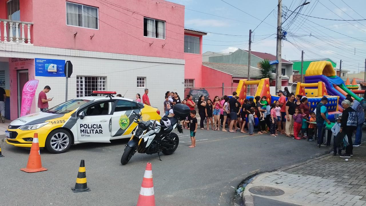 No último sábado, 4 de outubro, o Batalhão de Polícia de Trânsito (BPTran) participou ativamente de um evento especial em comemoração ao Dia das Crianças, realizado no bairro Uberaba, em Curitiba. A ação social foi promovida pela ONG Ação Alice Ribeiro Alback, em parceria com a Associação de Moradores do Solitude 2, e reuniu mais de 1.100 crianças da comunidade.
