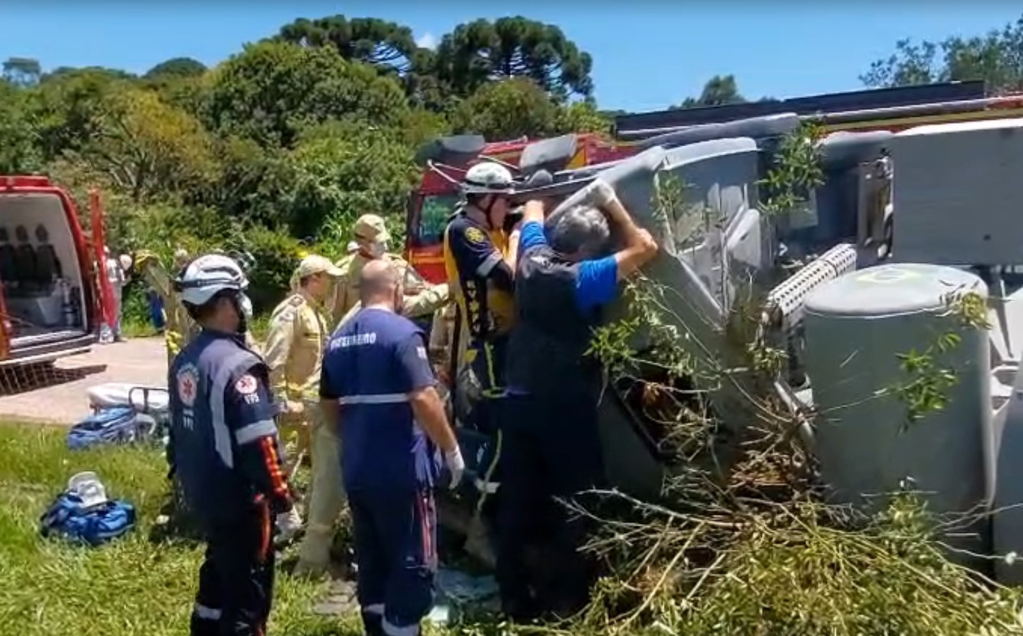Equipes de resgate do Corpo de Bombeiros, Resgate Voluntário Parceiros da Vida (RVPV), com apoio da equipe aeromédica da PRF, trabalharam por quase 3 horas em um resgate dramático na zona rural de São José dos Pinhais, no fim da manhã desta quarta-feira (18).