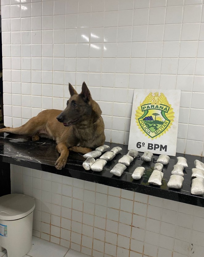 Na madrugada deste sábado (15), por volta de 00h10, durante ação de fiscalização na região do Terminal Rodoviário de Cascavel, a equipe de Choque do 6º Batalhão empregou a cadela K9 Bersa na inspeção de um ônibus da empresa Catarinense, que fazia o itinerário Foz do Iguaçu–Curitiba.