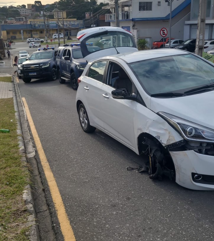 Os guardas tentaram realizar a abordagem, mas o indivíduo empreendeu fuga em direção a Colombo. Durante a fuga ele colidiu em alguns carros e com o pneu estourado, o carro não teve mais condições de rodar e parou na Rua Thomas Edison, no bairro Guaraituba.