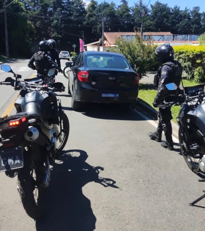 Na manhã desta quarta-feira (18), equipes do Grupamento Tático de Motos da Guarda Municipal recuperaram um veículo com alerta de roubo no bairro Capela Velha.