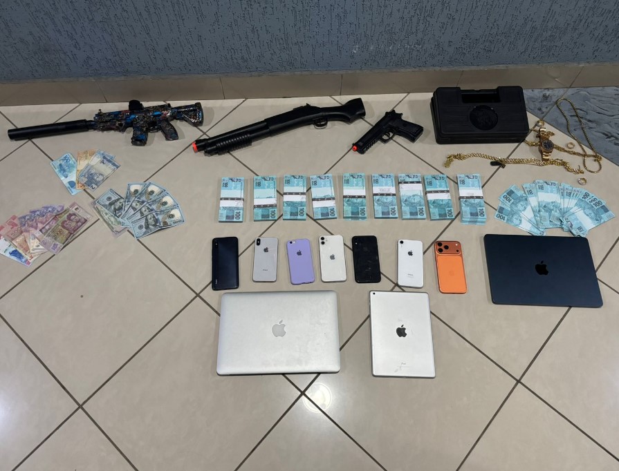 Em continuidade à ocorrência, foi constatado que o suspeito mantinha cerca de R$ 100.700,00 em notas falsas de cem reais, além de valores em dólares, pesos argentinos e guaranis. Segundo o relato da vítima, o homem ostentava um padrão de vida elevado e possuía veículos de luxo, além de manter atividades suspeitas relacionadas a crimes financeiros.