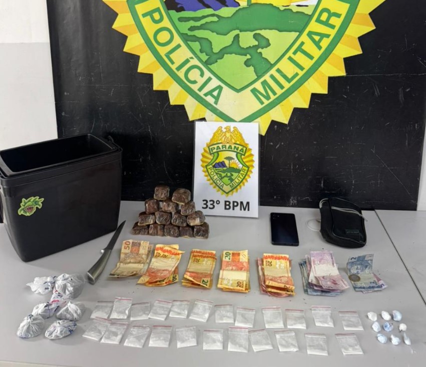 Durante a abordagem a um grupo de pessoas, os policiais localizaram com um homem, de nacionalidade venezuelana, porções de maconha e cocaína já fracionadas para venda, além de R$ 538 em dinheiro trocado.