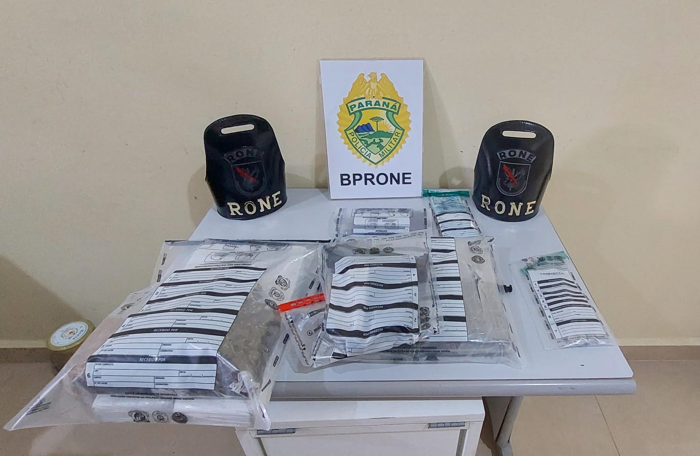 Durante as buscas na residência, foram encontrados mais de dois quilos de maconha, mais de dois quilos de cocaína e porções de crack, além de dinheiro em espécie e um celular. Também foi apreendida a pistola calibre 9x19mm utilizada pelo autor, municiada com duas munições. Todo o material foi encaminhado à Delegacia de Pontal do Paraná para as medidas de Polícia Judiciária.