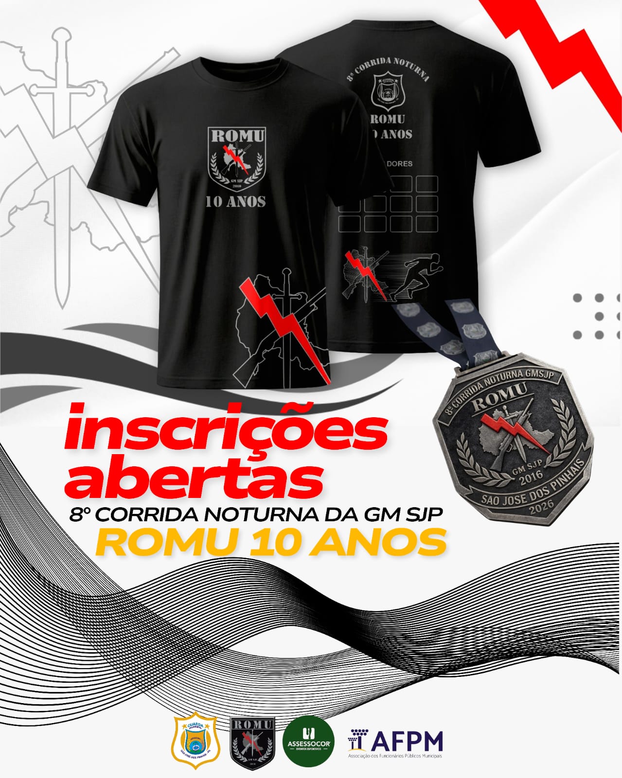 Estão abertas as inscrições para a 8ª Corrida Noturna da Guarda Municipal de São José dos Pinhais, evento que marca os 10 anos da Ronda Ostensiva Municipal (ROMU). A corrida já se consolidou no calendário esportivo do município e reúne atletas, servidores da segurança pública e a comunidade em geral.