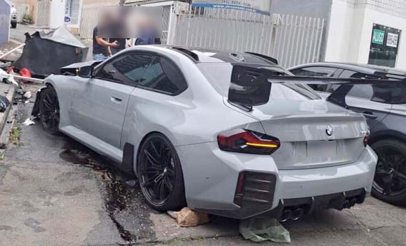 Nem mesmo o aerofólio traseiro imenso foi capaz de auxiliar na condução de uma BMW M2 Coupé Track, avaliada em torno de R$ 600.000,00 reais, a evitar uma colisão no bairro Campina do Siqueira em Curitiba.
