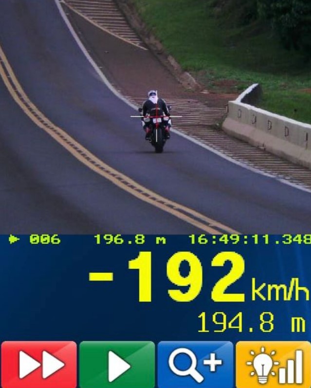 Um motociclista foi flagrado pela Polícia Rodoviária Federal (PRF) trafegando a 192 km/h na BR-277, em Guarapuava, na região central do Paraná. A infração foi registrada na tarde deste sábado (28) durante uma operação de fiscalização de velocidade realizada na rodovia.