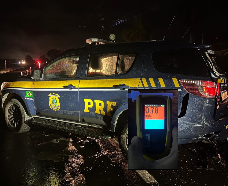O homem foi preso em flagrante por embriaguez ao volante e encaminhado à Delegacia da Polícia Civil de Maringá. O veículo Toyota Hilux que ele conduzia foi recolhido ao pátio conveniado da PRF.