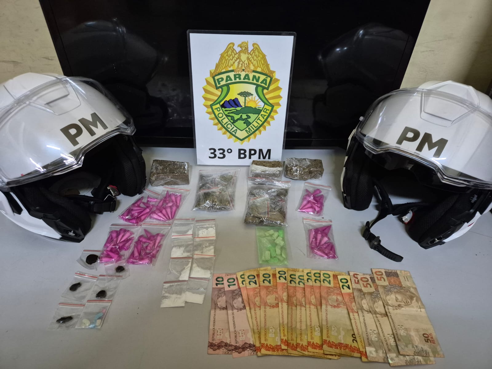 Durante patrulhamento preventivo, os policiais vistoriaram um buraco usado como ponto de armazenamento de drogas por traficantes da região. Minutos depois, a equipe visualizou uma mulher retornando ao local e manipulando o interior do esconderijo, o que motivou nova abordagem. No buraco foram encontrados 20 eppendorfs de cocaína, dois tabletes de maconha, 24 porções da mesma droga e 15 comprimidos de ecstasy.