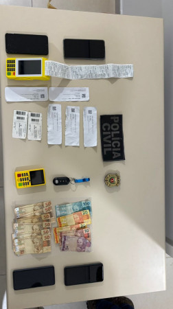 Com eles, os policiais civis apreenderam ingressos, maquininhas de cartão, dinheiro em espécie e celulares.