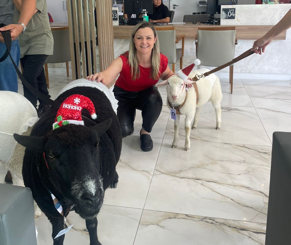 Pet terapia leva ovelhas em clima natalino ao Hospital Ônix Batel