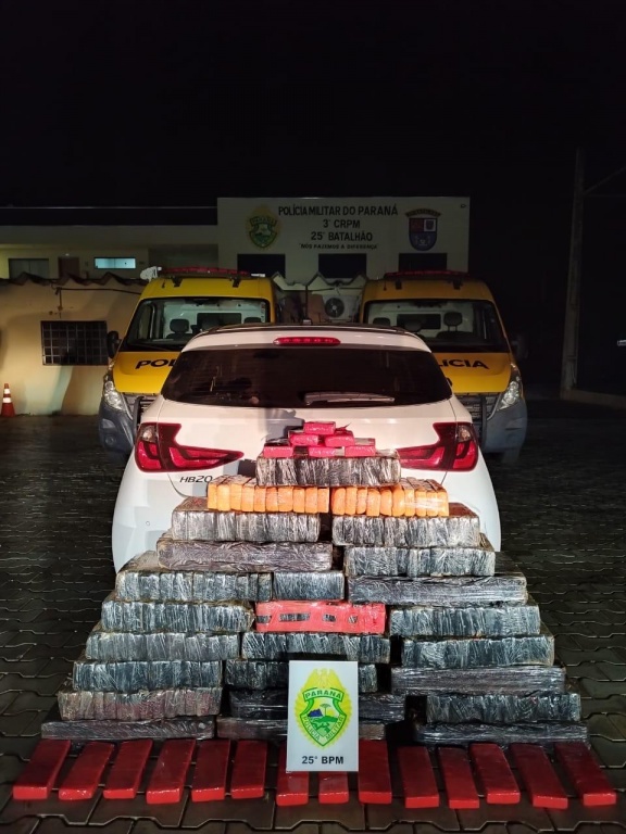 Nesta quinta-feira (2), a Polícia Militar do Paraná, durante patrulhamento pela Rodovia PR-323, nas proximidades do trevo de acesso a Mariluz, realizou a abordagem de um veículo Hyundai HB20, de cor branca, que trafegava em atitude suspeita no sentido Iporã–Umuarama.