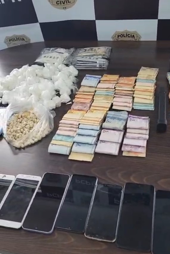 Durante o cumprimento das diligências, os policiais apreenderam mais de 1.800 pinos de cocaína, 350 pedras de crack, mais de R$ 25 mil em dinheiro, aproximadamente mil dólares em espécie, além de relógios importados, aparelhos celulares, duas armas de fogo de calibre restrito e munições. Entre o material recolhido também constam cerca de 100 munições de uso restrito e outras 20 munições de fuzil, bem como dois veículos e uma motocicleta utilizados pelo grupo investigado.