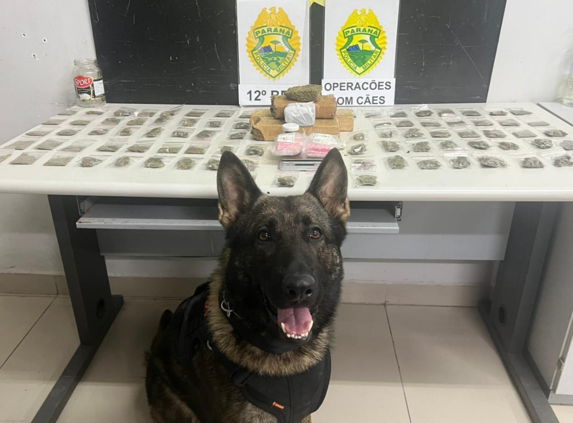 A equipe da 1ª Companhia do 12º Batalhão passava pela região quando percebeu um portão aberto e uma movimentação suspeita no interior de um imóvel. Ao notar a presença policial, um indivíduo dispensou um cigarro de maconha e correu para dentro da casa. A equipe realizou a abordagem e, com apoio do cão de faro Enox, localizou tabletes de maconha e porções já embaladas para comercialização, além de uma balança de precisão e diversos materiais usados no fracionamento e preparo da droga.