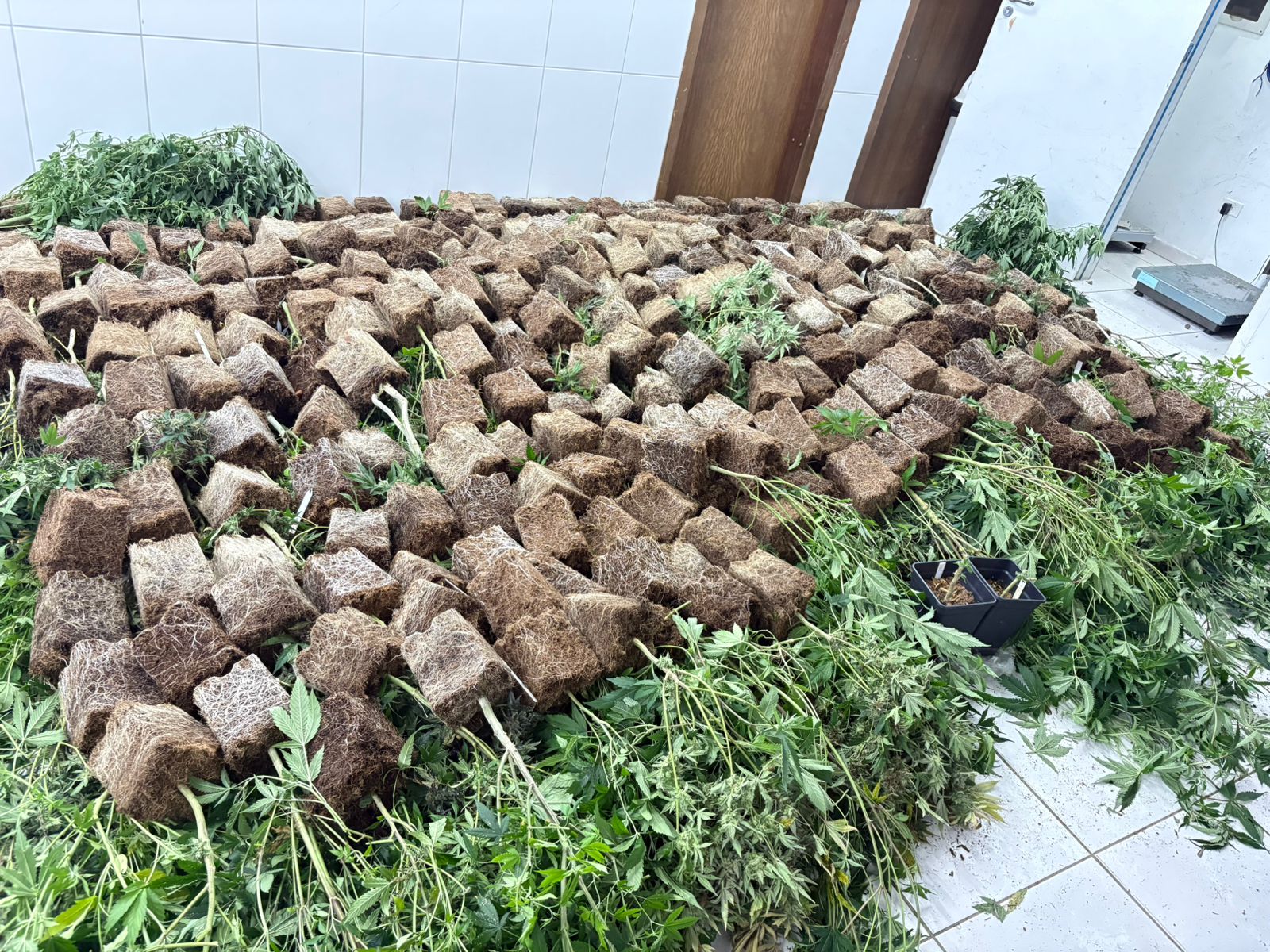 Ao realizar a vistoria, os policiais encontraram uma estrutura completa para cultivo de maconha em larga escala. No total, foram localizadas quatro estufas equipadas com ventiladores, filtros, lâmpadas LED, cilindros de CO₂ e demais materiais utilizados para acelerar o crescimento das plantas.