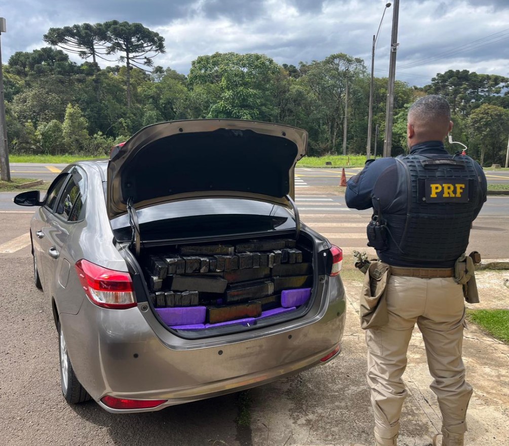 A ocorrência foi registrada por volta das 14h, quando os policiais deram ordem de parada a um Toyota Yaris cinza. Durante a fiscalização, foram encontrados diversos tabletes de maconha escondidos no porta-malas, totalizando 360 quilos do entorpecente.