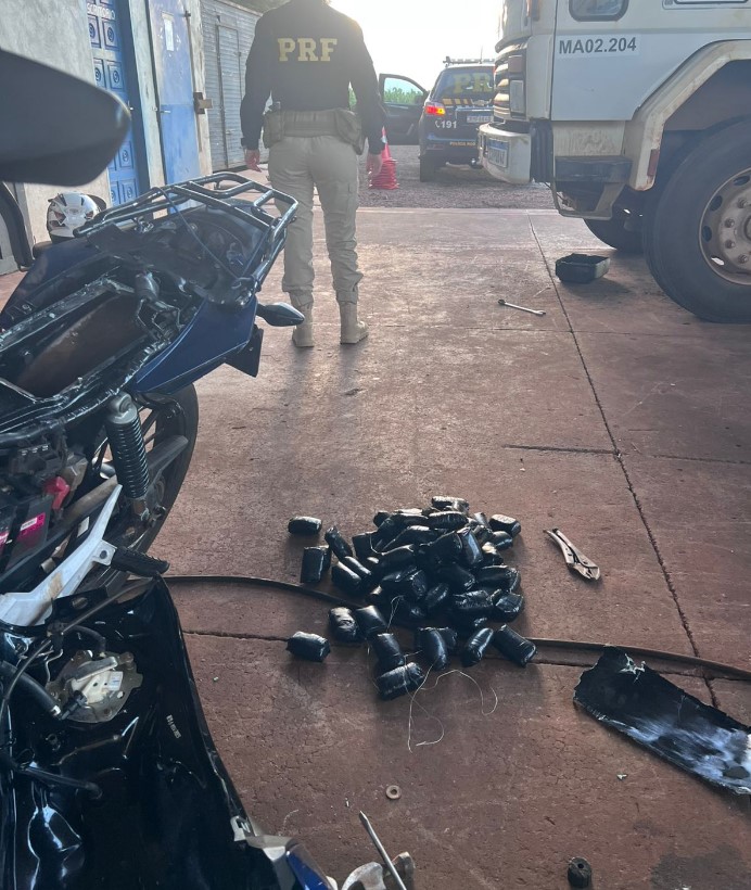 Diante da inconsistência nas informações, os policiais realizaram uma busca detalhada na motocicleta e localizaram diversos invólucros de haxixe escondidos sob o banco do veículo.