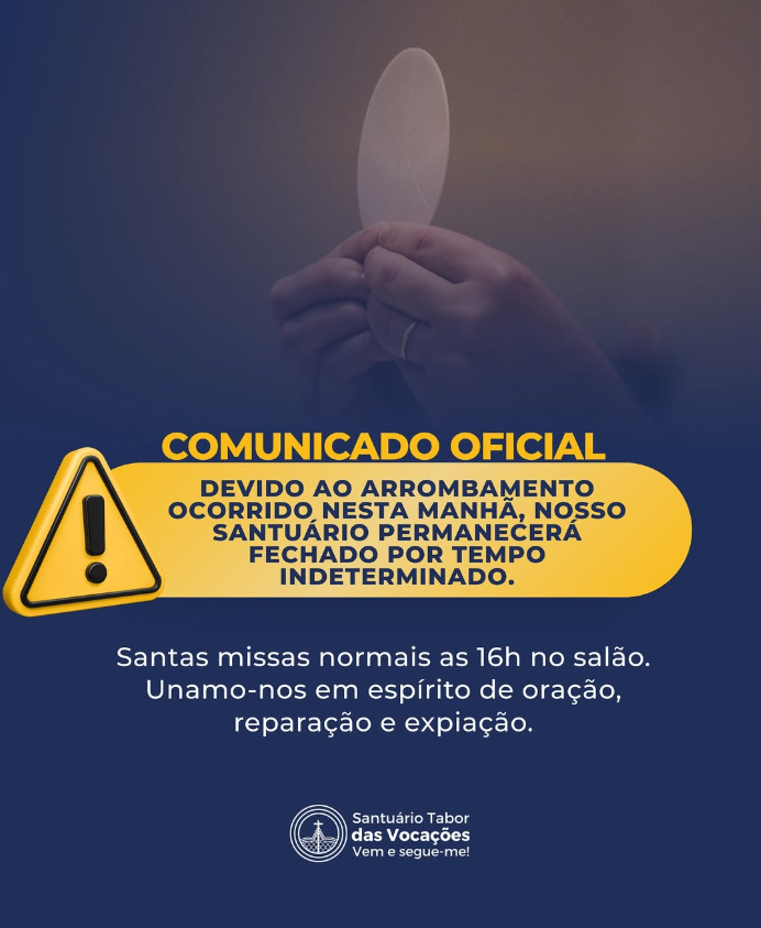 Câmeras de segurança flagraram o momento em que uma pessoa entra no santuário. Nas imagens, é possível ver o suspeito se ajoelhando e forçando a porta até conseguir arrombá-la. Ele entra e sai do espaço algumas vezes, chega a mexer no altar e, em determinado momento, usa uma cadeira para deslocar a câmera interna, tentando evitar o registro da ação.