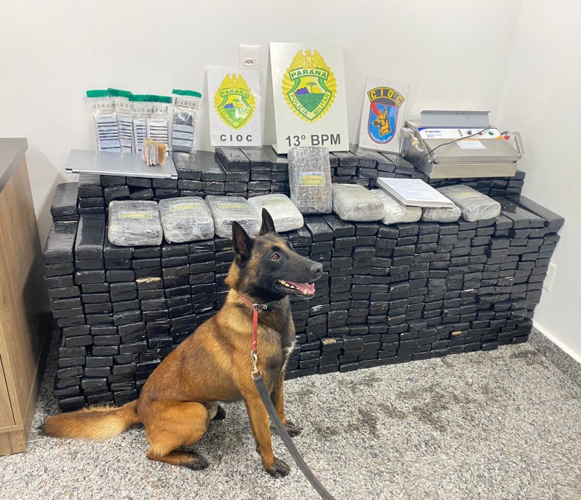 Uma ação conjunta entre equipes da Polícia Militar do Paraná, por meio do 13º Batalhão, ROTAM e da Companhia Independente de Operações com Cães (CIOC), resultou na apreensão de 680 quilos de maconha na tarde deste sábado (18), no bairro Cidade Jardim, em São José dos Pinhais.